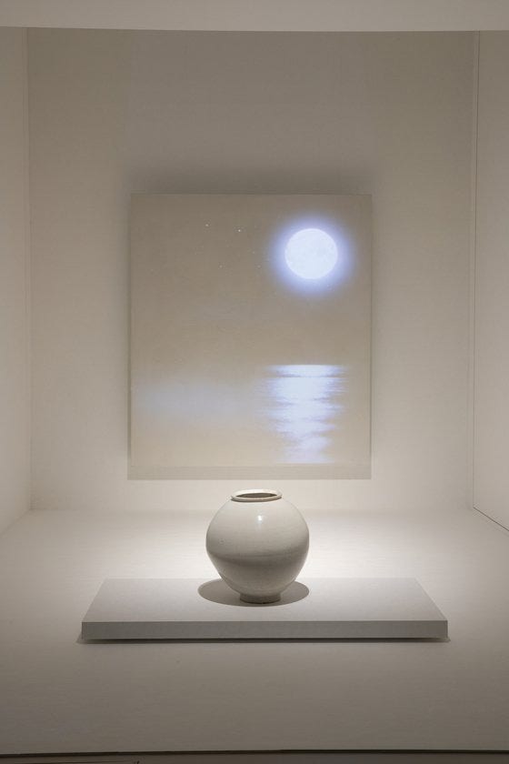 친구의 선물로 달항아리를 골랐던 이유는 함께 국립중앙박물관에 방문했을 때 친구가 전시관의 달항아리 앞에서 한참동안 자리를 뜨지 못한 채 넋 놓고 바라보았던 모습을 기억하고 있었기 때문이었다. 달항아리 곁에 붙어 있던 설명은 이러했다.