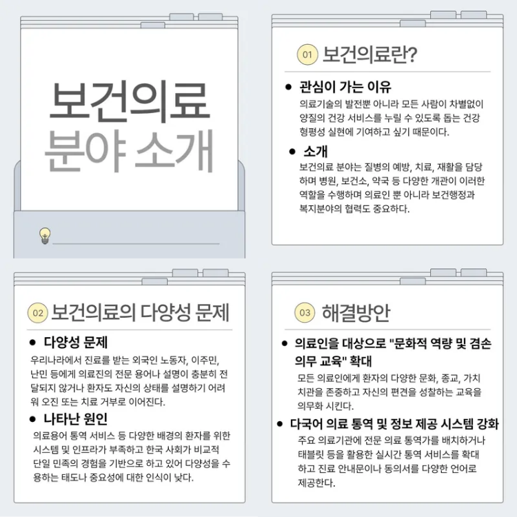 이어진 활동에서 학생들은 각자 자신의 희망 진로 분야의 문화 다양성 문제를 도출하고 카드뉴스로 제작했습니다. 국제정치, 보건, 회계, 경영 등 다양한 분야가 다뤄졌습니다. 물론 완벽한 분석은 아니었지만, 학생들이 진로에서 맞닥뜨릴 다양성 이슈를 한 번이라도 고민해 본 것만으로도 의미가 있다고 생각합니다. 또 이것이 먼 미래에 해당 분야의 다양성 가치 안착에도 도움이 될 것이라고 믿습니다.