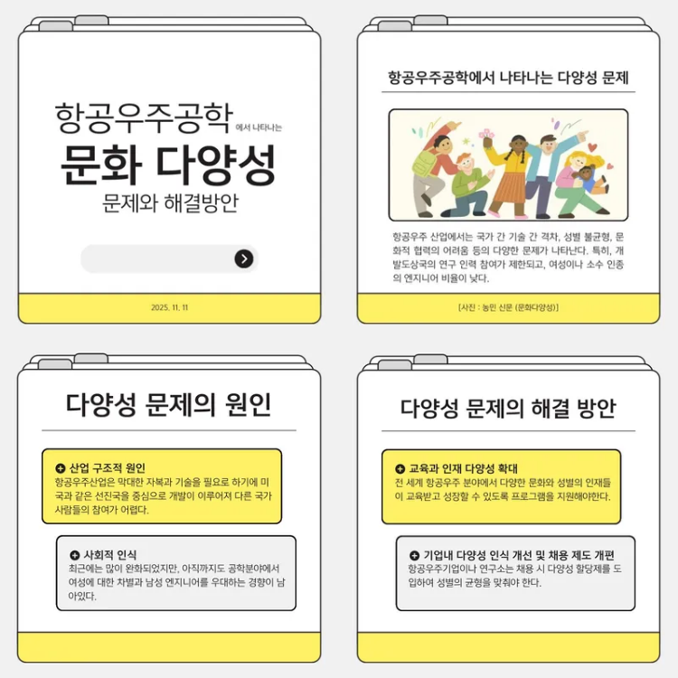 학생들이 제작한 나의 관심분야의 문화다양성 카드뉴스