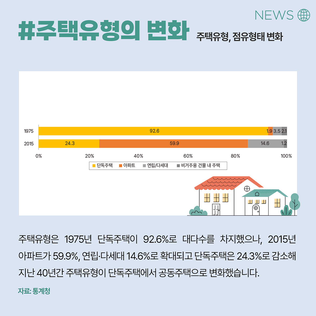 로 감소해 지난 40년간 주택유형이 단독주택에서 공동주택으로 변화했습니다.