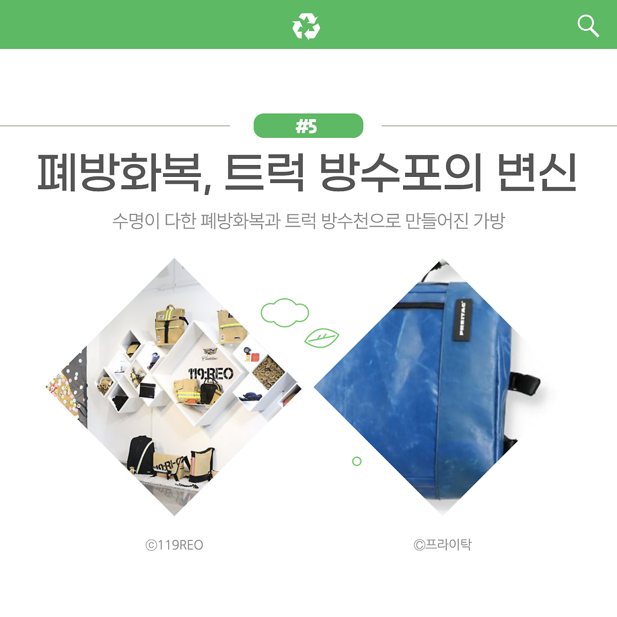 수명이 다한 폐방화복과 트럭 방수천으로 만들어진 가방