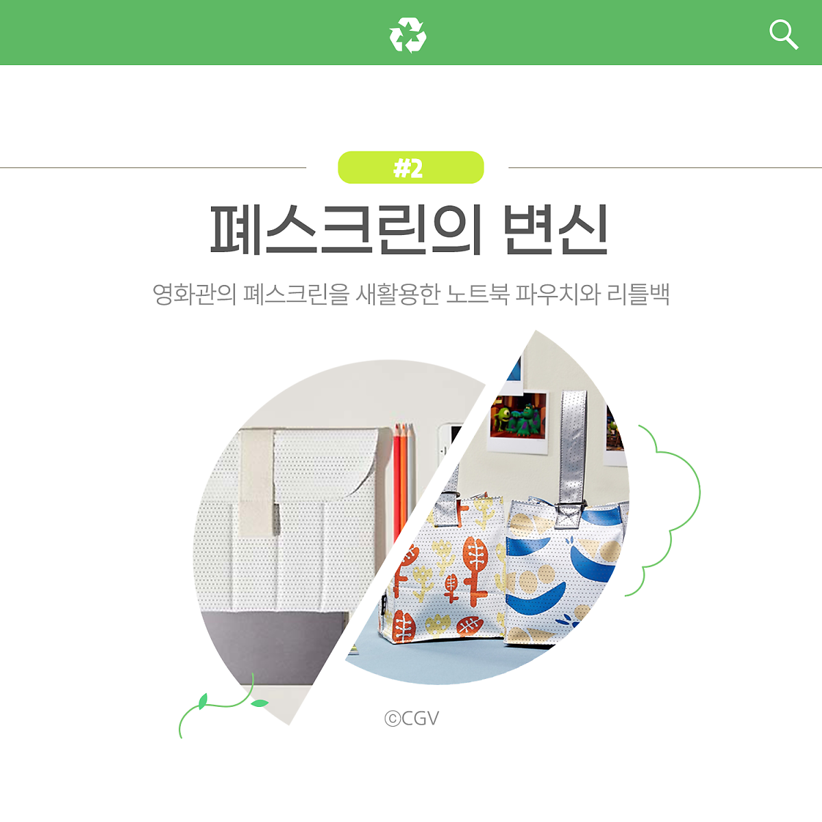 영화관의 폐스크린을 새활용한 노트북 파우치와 리틀백