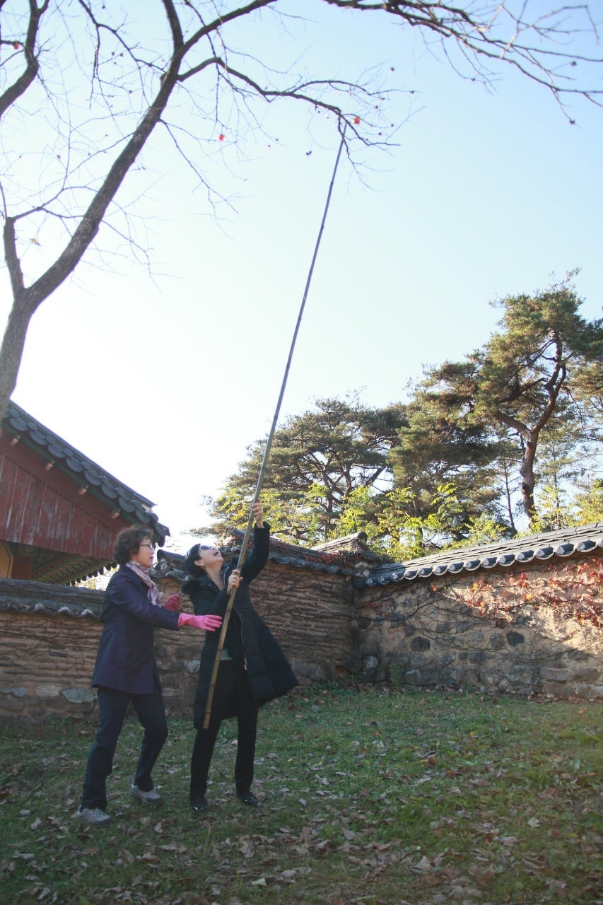 (좌)가을에 감을 따는 체험을 하는 싱가폴 관광객,(우)단풍을 즐기는 베트남 관광객 ⓒ호기헌
