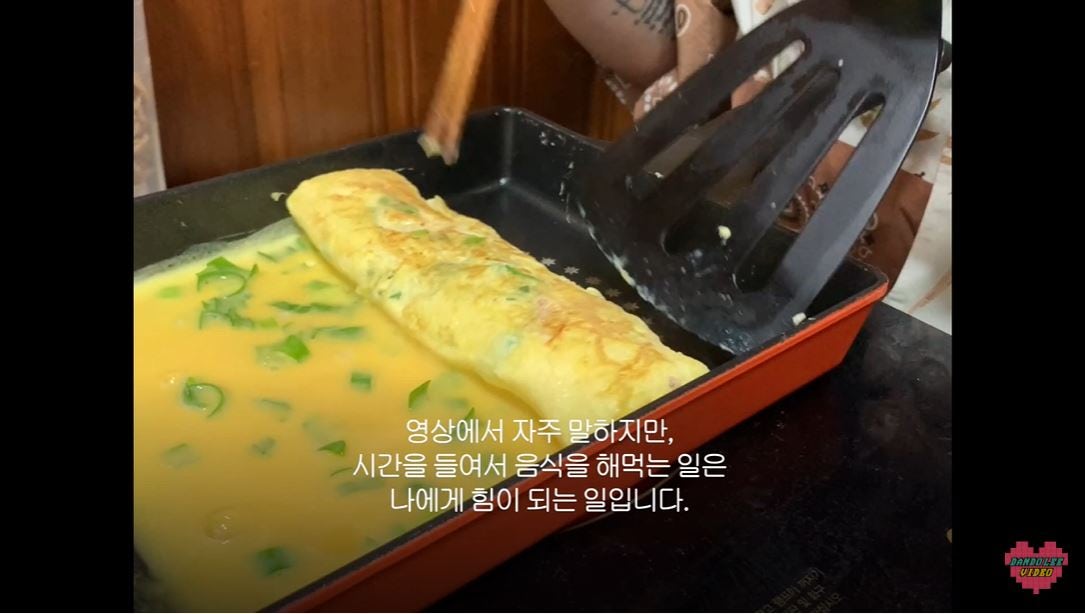 영상 속에서 만족스럽게 먹는 D의 모습을 보는 것도 좋지만, 그 음식을 먹기 위해 긴 시간을 들여 재료를 손질하고 삶고 볶는 과정을 보고 있으면 늘 조금씩 감탄하게 된다. 깊은 무기력함을 자주 느끼는 D가 건강한 끼니를 챙겨 먹는 일만큼은 소홀하지 않으려 노력한다는 걸 알기 때문이다. 그 이유를 D는 어느 여름날 두툼한 계란말이를 만드는 브이로그에 자막으로 적어두었다.