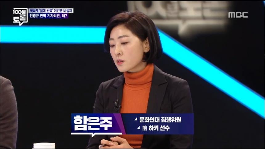함은주 위원이 체육계 문제에 대해 토론하는 모습 ⓒ MBC 100분 토론