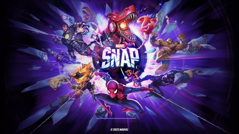 코믹스에서 영화로 성공적인 확장을 이뤄내 현대 IP확장의 모범사례로도 불리는 마블 코믹스는 시네마틱 시리즈에서의 성공을 바탕으로 2022년 모바일 카드배틀 게임 <마블 스냅>을 출시했다. <하스스톤>, <매직 더 개더링>처럼 디지털 디바이스를 기반으로 이뤄지는 카드 수집과 배틀 시스템이라는 카드배틀 게임의 기본에 충실하면서도, 캐릭터와 세계관을 전세계에 안착시킨 원작 IP의 힘을 훌륭하게 결합한 <마블 스냅>은 성공적으로 시장에 안착했고, 영향력있는 게임어워드인 TGA에서 2022년 베스트 모바일게임 상을 수상하는 등 평단과 시장 모두로부터 호의적인 반응을 이끌어낸 바 있었다.