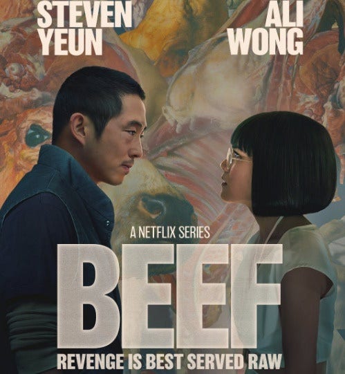 한편 내가 즐겁게 본 드라마는 '성난 사람들 (Beef)'이다. 미국에서 제작되었지만 출연하는 얼굴들은 익숙하다. 크레딧에 적힌 이름들도 낯익다. 제작진의 대부분이 아시아나 한국계다. 아시아 창작자들의 자전적 이야기를 각색하여 풀어낸 이 드라마는 이국적이면서도 익숙한 분위기를 동시에 풍긴다. 아시안이라는 소수성으로만 풀어낼 수 있는 시각을 감각적이고 날카롭게 풀어낸다. 세련되면서도 탁월하고, 몹시 화가 나 있으면서도 재치 있다. 주인공이 아닌 것 같은 사람들이 주인공이 되어 있다. 전반적 흐름에 있어 내용과 말하는 주체가 모두 주인공에서 비 주인공으로 이동하고 있는 것이다. '주인공'이라는 말을 넓히고 재정의하는 일들이 일어난다. 그런 시도에 성공한 드라마는 전 세계로 뻗어나가며, 엄마와 나의 밥상에도 오른다. 이러한 흐름을 지켜보는 일은 즐겁지 않을 수 없다. 지금 그 큰 줄기를 주도하고 있는 것은 한국임에 자명해 보인다. 한동안 밥상에서 언급되는 드라마는 마르지 않을 것으로 보이니까.