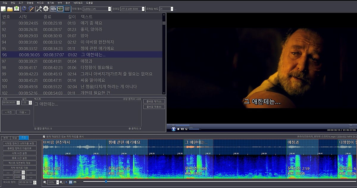 자막프로그램 작업 화면 ⓒ박나연 제공