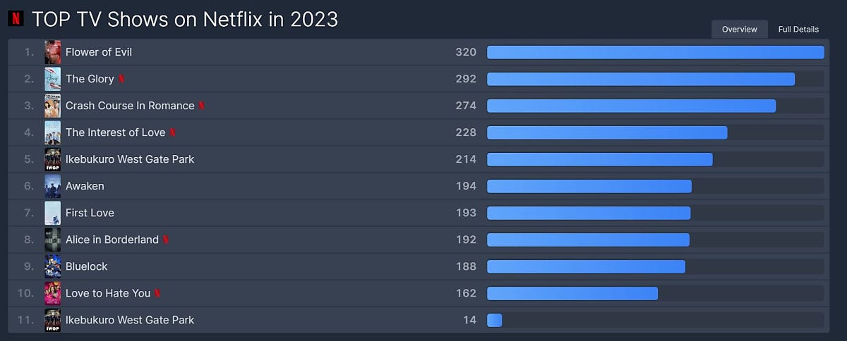 2023년 일본 넷플릭스 시리즈 top10 순위(3월 1주 조회) 출처=FlixPatrol 차트 캡처