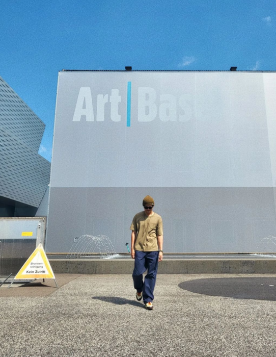 미국 미술 팟캐스트 '더 아트 바젤' 앞의 RM ⓒ더블유코리아